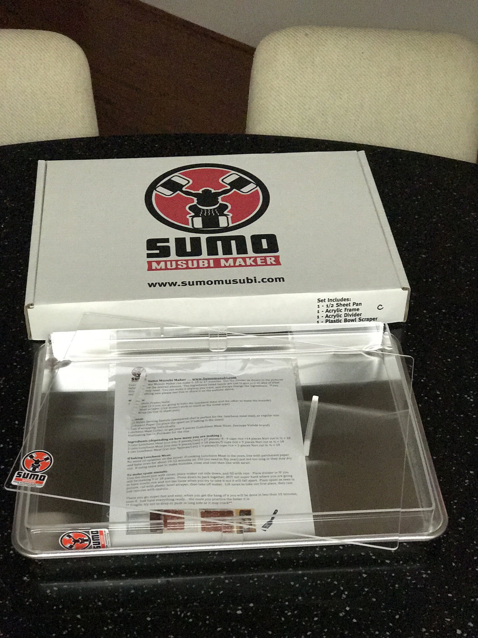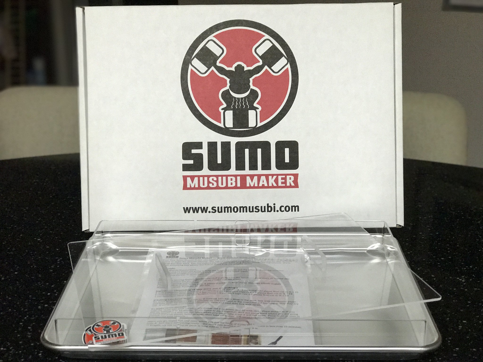 Sumo Musubi Maker SET is great for making musubi for larger groups. It is perfect for making 9, 18 or 27 musubis at a time. Includes the 1/2 sheet pan, frame, divider, presser, and bowl scraper.
